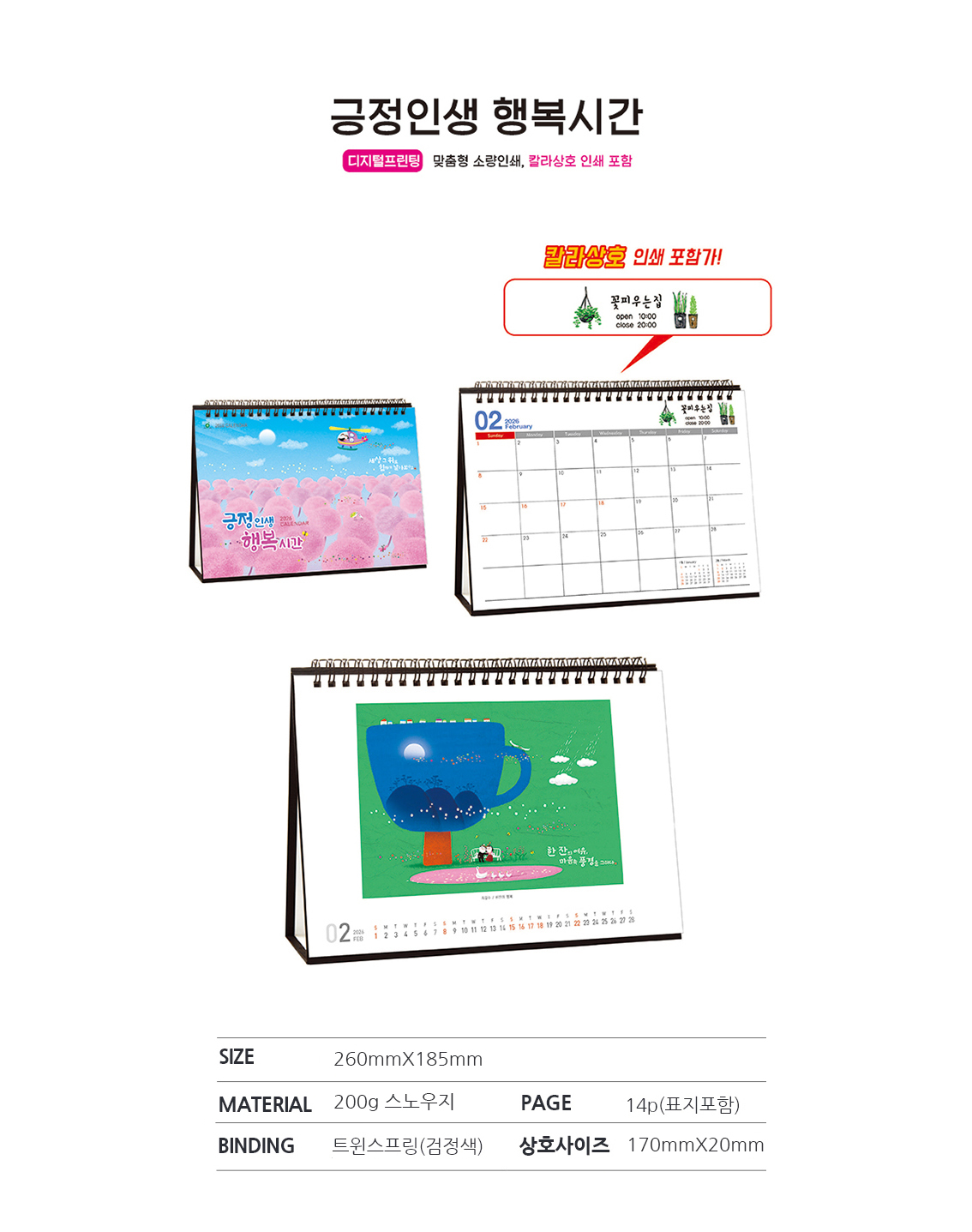 Home / 탁상용 캘린더 / 다이어리 / 탁상용 캘린더 / 탁상용 캘린더 기성 – 긍정인생 행복찾기 탁상용 캘린더 기성 – 긍정인생 행복찾기4,500원 (부가세 별도) 개당 : 4,500원 상호인쇄 : 개당 300원(100부 이상 가능) 배송비 : 착불택배 기성제품 특성상 재고소진이 될 수 있으니 우측 카카오톡 문의하기를 통해 재고를 필히 확인해 주시기 바랍니다. 탁상용 캘린더 기성 - 긍정인생 행복찾기 quantity [필수] 옵션을 선택해 주세요. 기타 사양을 원하시면 1234-1234로 문의바랍니다. 인쇄비는 사이즈에 따라 견적이 상이하므로 1234-1234로 문의바랍니다. Add to cart 구매하기 Categories: 탁상용 캘린더, 탁상용 캘린더 / 다이어리 Description Description Related products 탁상용 캘린더 / 다이어리 , 탁상용 캘린더 탁상용 캘린더 기성 – 희망 메세지 개당 : 2,700원 상호인쇄 : 개당 300원(100부 이상 가능) 배송비 : 착불택배 기성제품 특성상 재고소진이 될 수 있으니 우측 카카오톡 문의하기를 통해 재고를 필히 확인해 주시기 바랍니다. 탁상용 캘린더 / 다이어리 , 양장 다이어리 양장 다이어리 – 매직샌드 32절, 25절 : 12,000원 인쇄 : 120,000원(불박, 은박, 금박 중 택1 / 300부 미만) 배송비 : 착불택배 시즌상품 특성상 재고소진이 될 수 있으니 우측 카카오톡 문의하기를 통해 재고를 필히 확인해 주시기 바랍니다. 탁상용 캘린더 / 다이어리 , 탁상용 캘린더 탁상용 캘린더 기성 – 모던아트갤러리 개당 : 4,500원 상호인쇄 : 개당 300원(100부 이상 가능) 배송비 : 착불택배 기성제품 특성상 재고소진이 될 수 있으니 우측 카카오톡 문의하기를 통해 재고를 필히 확인해 주시기 바랍니다. 탁상용 캘린더 / 다이어리 , 양장 다이어리 양장 다이어리 – 엣지포켓 32절 : 8,000원 (권당) 25절 : 10,000원 (권당) 인쇄 : 120,000원 (불박, 은박, 금박 중 택1 / 300부 미만) 배송비 : 착불택배 시즌상품 특성상 재고소진이 될 수 있으니 우측 카카오톡 문의하기를 통해 재고를 필히 확인해 주시기 바랍니다.