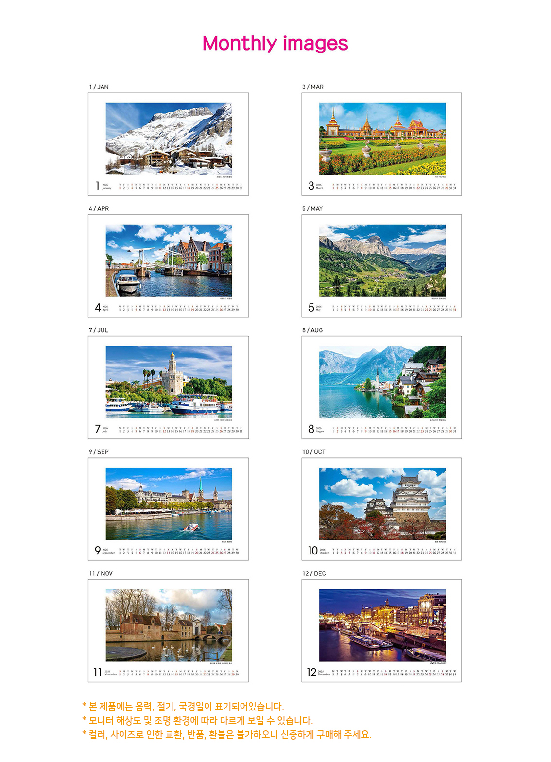 Home / 탁상용 캘린더 / 다이어리 / 탁상용 캘린더 / 탁상용 캘린더 기성 – 아름다운 세계풍경 탁상용 캘린더 기성 – 아름다운 세계풍경2,700원 (부가세 별도) 개당 : 2,700원 상호인쇄 : 개당 300원(100부 이상 가능) 배송비 : 착불택배 기성제품 특성상 재고소진이 될 수 있으니 우측 카카오톡 문의하기를 통해 재고를 필히 확인해 주시기 바랍니다. 탁상용 캘린더 기성 - 아름다운 세계풍경 quantity [필수] 옵션을 선택해 주세요. 기타 사양을 원하시면 1234-1234로 문의바랍니다. 인쇄비는 사이즈에 따라 견적이 상이하므로 1234-1234로 문의바랍니다. Add to cart 구매하기 Categories: 탁상용 캘린더, 탁상용 캘린더 / 다이어리 Description Description Related products 탁상용 캘린더 / 다이어리 , 양장 다이어리 양장 다이어리 – 세무 32절 : 8,000원 (권당) 25절 : 10,000원 (권당) 인쇄 : 120,000원 (불박, 은박, 금박 중 택1 / 300부 미만) 배송비 : 착불택배 시즌상품 특성상 재고소진이 될 수 있으니 우측 카카오톡 문의하기를 통해 재고를 필히 확인해 주시기 바랍니다. 탁상용 캘린더 / 다이어리 , 시스템 다이어리 시스템 다이어리 – 샤르망 자석 32절 : 13,000원 (권당) 25절 : 15,000원 (권당) 인쇄 : 120,000원 (불박, 은박, 금박 중 택1 / 300부 미만) 배송비 : 착불택배 시즌상품 특성상 재고소진이 될 수 있으니 우측 카카오톡 문의하기를 통해 재고를 필히 확인해 주시기 바랍니다. 탁상용 캘린더 / 다이어리 , 탁상용 캘린더 탁상용 캘린더 기성 – 세계명화풍경 개당 : 2,700원 상호인쇄 : 개당 300원(100부 이상 가능) 배송비 : 착불택배 기성제품 특성상 재고소진이 될 수 있으니 우측 카카오톡 문의하기를 통해 재고를 필히 확인해 주시기 바랍니다. 탁상용 캘린더 / 다이어리 , 양장 다이어리 양장 다이어리 – 엣지포켓 32절 : 8,000원 (권당) 25절 : 10,000원 (권당) 인쇄 : 120,000원 (불박, 은박, 금박 중 택1 / 300부 미만) 배송비 : 착불택배 시즌상품 특성상 재고소진이 될 수 있으니 우측 카카오톡 문의하기를 통해 재고를 필히 확인해 주시기 바랍니다.